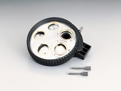 為了在三個物鏡間得到相同的同心,配備了有兩處中心補正機構(gòu)的中心補正7孔物鏡轉(zhuǎn)換器。即使把物鏡從低倍率變換到高倍率,其影像中心也不會偏移,提高了檢查效率。
