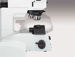 電動(dòng)物鏡轉(zhuǎn)換器示意圖 電動(dòng)物鏡轉(zhuǎn)換器的切換速度比原來(lái)提高了20%。物鏡的切換,可以操作按鈕瞬時(shí)間完成,提高了檢查速度。三種潔凈類(lèi)型的物鏡轉(zhuǎn)換器可以按需選擇。另外,UIS2物鏡大幅度地提高了高倍率的偏心精度。即便是有小尺寸攝像元件的CCD攝像機(jī),在切換倍率時(shí)也不會(huì)由視場(chǎng)中心附近偏離。 |